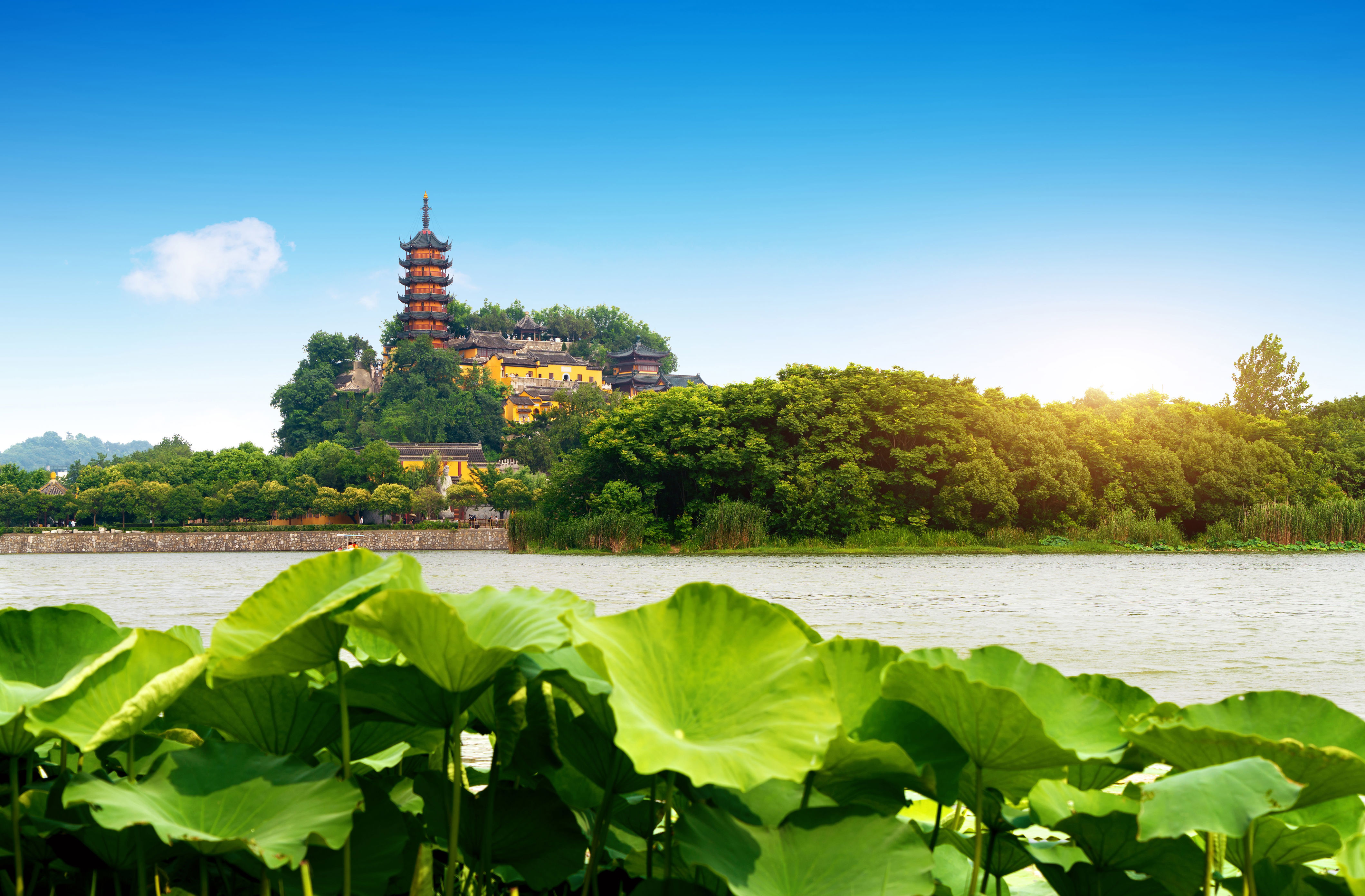 金山湖金山湖,是镇江知名的湖泊,风景如画,欣赏湖光潋滟的美景,亭台楼阁,木桥和花草树木错落其中,盛夏时节还可以看到荷叶满湖,荷花摇曳其中,宛如一幅秀丽的山水画卷。还可以看到巍峨当地慈寿塔倒映在如镜子般平坦的湖面上,令人心旷神怡。